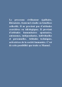 Le processus civilisateur égalitaire, libératoire, fraternel résulte en bénéfices collectifs. Il ne provient pas d’attitudes coercitives ou idéologiques. Il provient d’attitudes humanitaires spontanées, autonomes, indépendantes, individuelles et personnelles. Attitudes techniques, activatrices de la société humaniste. C’est de cette possibilité que traite ce Manuel.